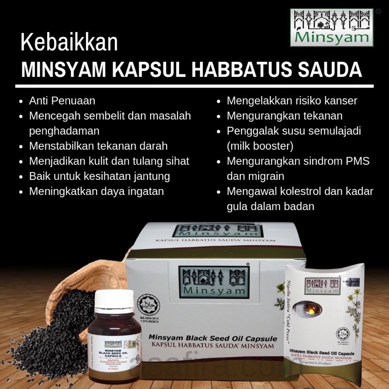 Khasiat Habbatussauda bukan cakap cakap kosong. KAPSUL MINYAK HABBATUS SAUDA SYRIA GOLD 60 KAPSUL MINSYAM Harga. Menurut kajian yang dilakukan oleh Universiti Harvard pada tahun 2010 mereka mendapati habbatus sauda kaya dengan.